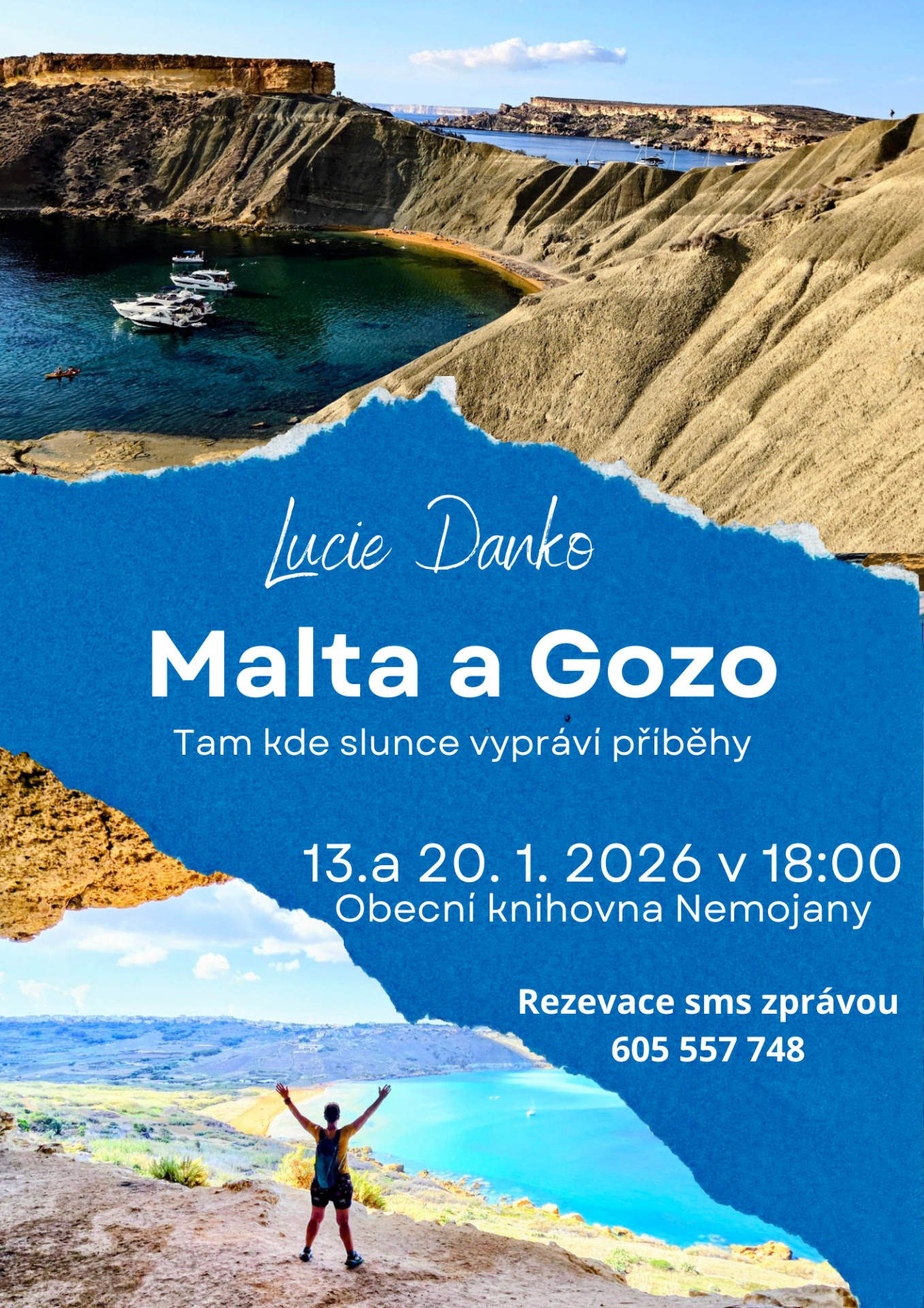 Obecní knihovna Nemojany zve na cestovatelskou besedu s Lucií Danko. Tentokráte navštívíme slunečné ostrovy Maltu a Gozo.